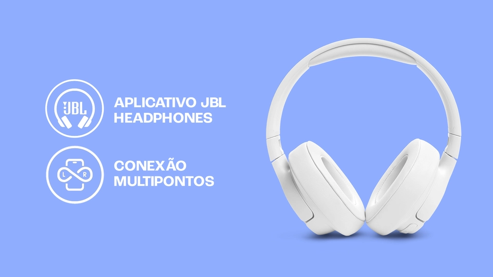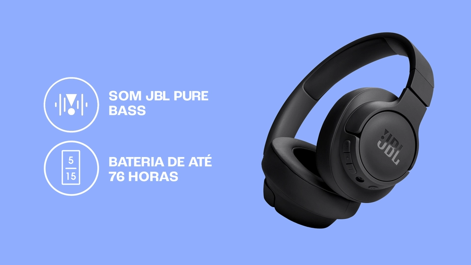 O headphone sem fio JBL Tune 720BT transmite o potente som JBL Pure Bass graças à última tecnologia Bluetooth 5.3. O fone é fácil de usar, proporciona até 76 horas de puro prazer e até 3 horas extras de bateria com apenas 5 minutos de carga. Baixe o aplicativo gratuito JBL Headphones e personalize seu som através do EQ, enquanto os avisos por voz o orientam a respeito dos recursos dos fones de ouvido. Gerencie chamadas, som e volume pelo fone, graças aos convenientes controles de botão. Se uma chamada for recebida enquanto você estiver assistindo a um vídeo em outro dispositivo, o JBL Tune 720BT muda diretamente para o seu celular, para que você nunca perca uma chamada. Leve e confortável mesmo após horas de uso, o fone de ouvido JBL Tune 720BT é dobrável para caber em sua mochila e acompanhá-lo em qualquer lugar.